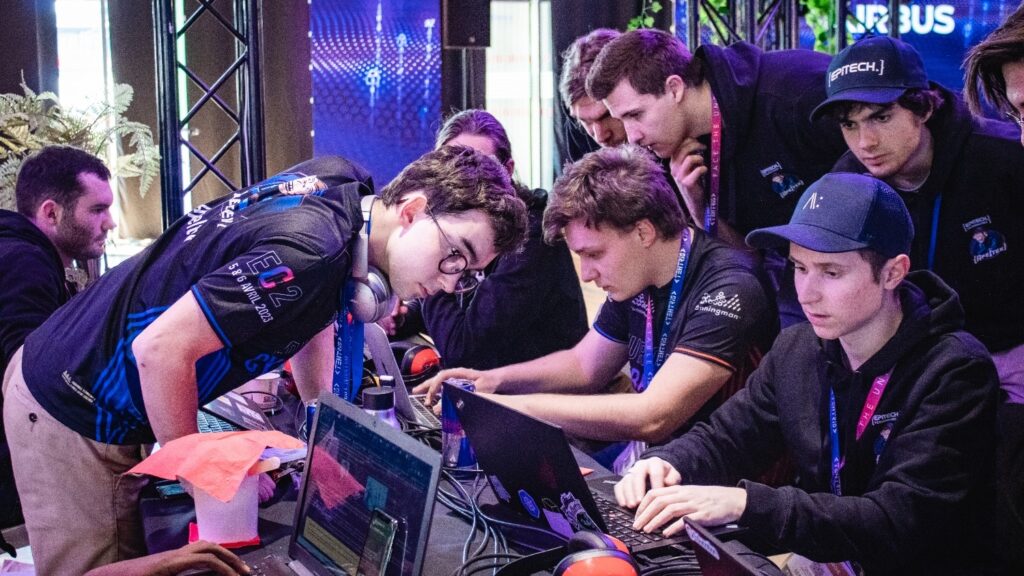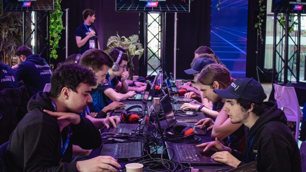 Parmi les grandes compétitions de cybersécurité en France on compte L’European CyberCup de Lille (EC2), la première compétition de e-sport dédiée au hacking éthique. Pendant deux jours s’affrontent professionnels et étudiants sur 6 épreuves exigeantes balayant tous les pans de la cybersécurité : CTF, Forensic, OSINT, Bug Bounty, Hardware et Speedrun. Chacun des challenges sont conçus pour placer les participants dans la peau de spécialistes en investigation numérique. La particularité de ce concours réside dans son animation qui reprend tous les codes de l’e-sport : une retransmission live sur Twitch, une animation rythmée, des t-shirts spécialement conçus pour l’événement, des décors, sons et lumières offrant aux compétiteurs une ambiance stimulante et pleine de fun !