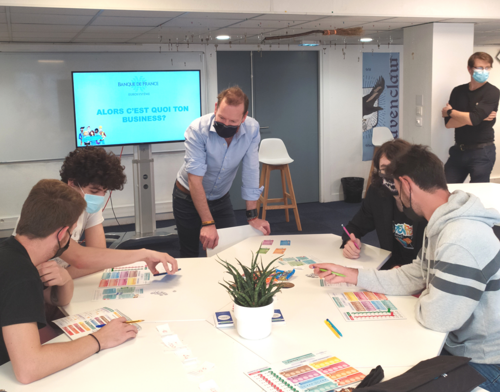 Grâce au jeu « Aventure Entrepreneur » créé par la Banque de France, les étudiants ont endossé le costume d’entrepreneur. Par groupe de quatre, ils devaient diriger une entreprise, avec pour objectif de convaincre le banquier de les accompagner grâce à différents indicateurs financiers.