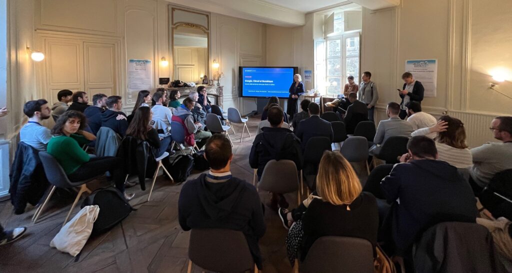 Après un mot d’accueil par Hélène Duval (Directrice Territoriale Rennes Métropole et numérique ainsi que Directrice Enedis Lab Bretagne) et Norbert Friant (Responsable du Service Numérique à Rennes Métropole), la trentaine de participants a pu échanger avec Hélène Chauviré de Carbone 4 sur les enjeux climatiques et les cadres d’action à mettre en place, tels que la sobriété, l’efficacité et la substitution.
